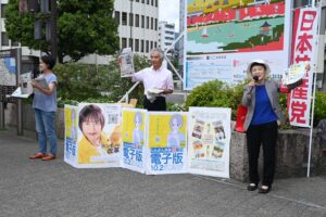 日本共産党滋賀県委員会は2日、大津市のJR大津駅前で「しんぶん赤旗」日曜版電子版の購読を呼びかけました。節木三千代、中山和行の両県議、黄野瀬明子元県議、県役員、党支部の人たちが参…