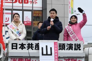 日本共産党の山添拓政策委員長は28日、堀川あきこ衆院近畿比例候補とともに大津市2カ所で街頭演説し、近畿で2議席を絶対に確保し、辰巳孝太郎、堀川両候補を必ず国会に送り返してほしいと…
