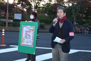 立道氏は「自民党はGDP(国内総生産)比2%への軍事費増額を前倒しで達成するということを参院選で公約に掲げていなかった」と指摘。「日本共産党は、みなさんの願いである消費税の減税、裏金問題の究明を行う政治に変えていくために全力で頑張っていく」と述べました。