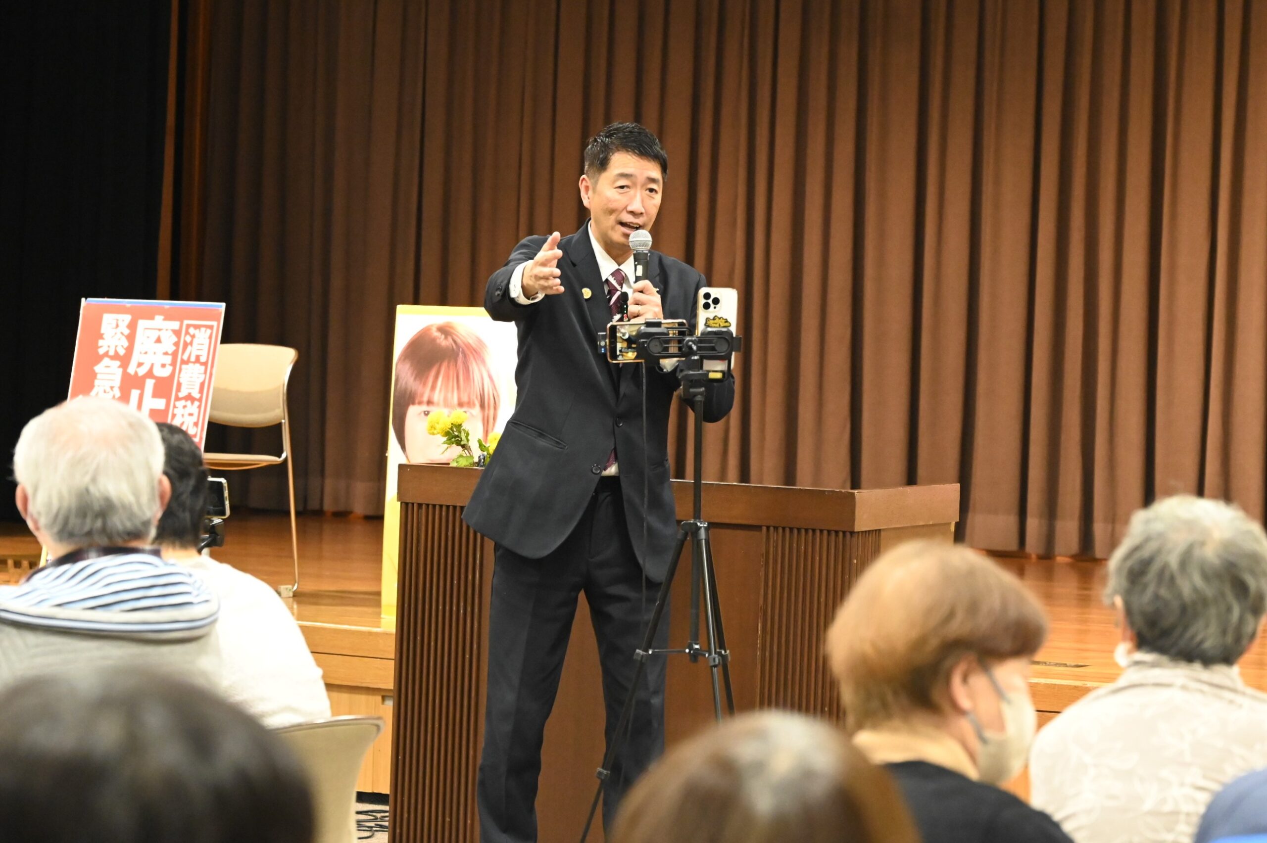 滋賀県の日本共産党東近江市委員会は6日、清水忠史元衆院議員を迎えたタウンミーティングを同市で開きました。清水氏は高市政権の暴走を批判し「日本共産党を強く大きくして暮らしや平和を守る日本を」と入党を呼びかけました。
