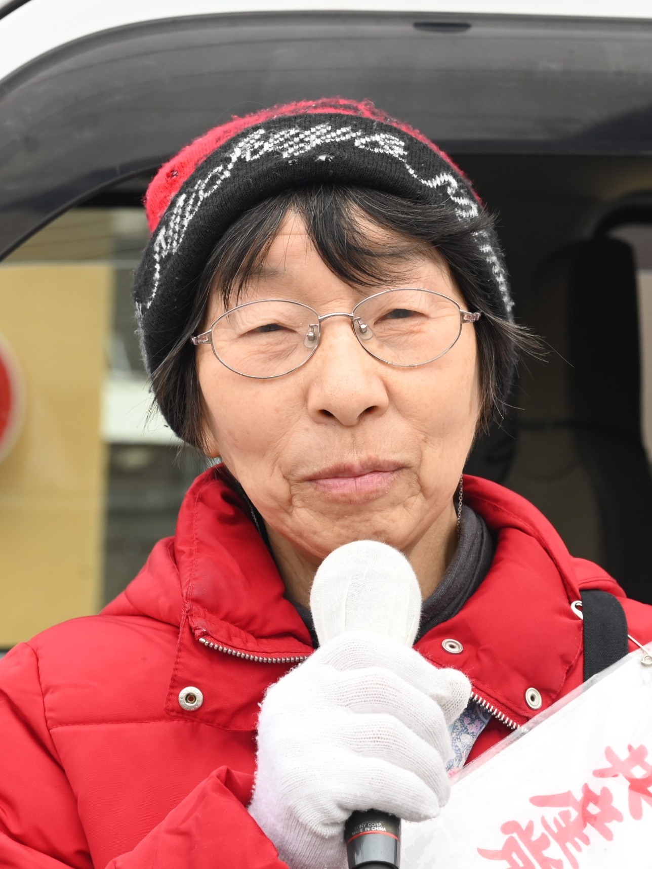 日本共産党は、小中学校の給食無償化や町内巡回バスの設置、学校体育館のエアコン設置、0~2歳児の保育料無料化などを公約し、住民の間に期待を広げています。滝候補は「戦争反対を貫いて104年の日本共産党。戦争する国づくりをストップさせるために頑張る」と訴えています。